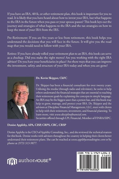 If you have an IRA, 401k, or other retirement plan, this book is important for you to read. It is likely that you have heard about how to invest your IRA, but what happens to the IRA in the future when you pass or your spouse passes? This book lays out the journey and strategies of what happens to the IRA and the tax strategies on how to keep the most of your IRA from the IRS. Pre-Retirement: If you are five years or less from retirement, this book helps you understand the decisions that you will face in the future. It will give you the road map that you would need to follow with your IRA. Retiree: If you have already rolled your retirement plan to an IRA, this book can serve as a checkup. Did you make the right moves? Are you working with the right IRA advisor? Do you have your beneficiaries in place? Are there ways that you can improve the investment, safety, and structure of your IRA today and when you are gone?