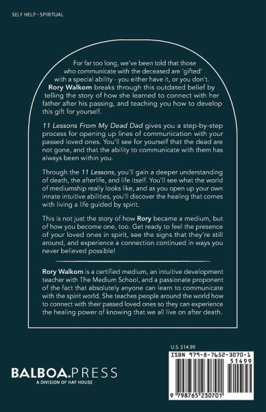 For far too long, we've been told that those who communicate with the deceased are 'gifted' with a special ability - you either have it, or you don't. Rory Walkom breaks through this outdated belief by telling the story of how she learned to connect with her father after his passing, and teaching you how to develop this gift for yourself. 11 Lessons From My Dead Dad gives you a step-by-step process for opening up lines of communication with your passed loved ones. You'll see for yourself that the dead are not gone, and that the ability to communicate with them has always been within you. Through the 11 Lessons, you'll gain a deeper understanding of death, the afterlife, and life itself. You'll see what the world of mediumship really looks like, and as you open up your own innate intuitive abilities, you'll discover the healing that comes with living a life guided by spirit. This is not just the story of how Rory became a medium, but of how you become one, too. Get ready to feel the presence of your loved ones in spirit, see the signs that they're still around, and experience a connection continued in ways you never believed possible!