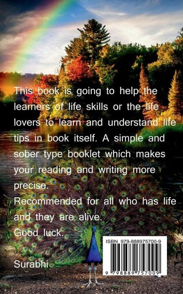 This book is going to help the learners of life skills or the life lovers to learn and understand life tips in book itself. A simple and sober type booklet which makes your reading and writing more precise. Recommended for all who has life and they are alive. Good luck. Surabhi