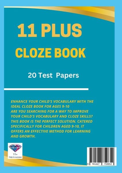 The 11 Plus Cloze Book is excellent for kids getting ready for their 11 Plus entrance exams. Inside, you'll find 20 cloze passages designed to boost your child's vocabulary. A cloze passage is an effective reading comprehension method that aids learners in predicting and verifying word meanings. By examining surrounding words, sentences, and paragraphs, children can grasp unfamiliar words or familiar ones with new meanings. This technique is best applied before diving into a text.