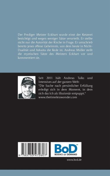 Der Prediger Meister Eckhart wurde einst der Ketzerei bezichtigt und wegen 28 Sätzen der Irrlehre verurteilt. Er stellte nicht nur die Autorität der Kirche in Frage, sondern umschrieb auch jenes offene Geheimnis, von dem heute in Advaita und Nondualität die Rede ist. Andreas Müller stellt die mystischen Sätze des Meisters Eckhart vor und kommentiert sie."