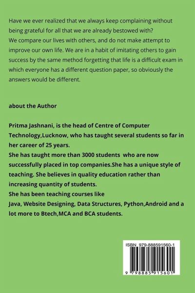 Sometimes we take life for granted and do not realize the immense countless blessings showered on us by nature. We do not pay gratitude for every moment of our life. When we are in a relationship, lack of communication often causes such relationships to break. When we face failures, we give up and lose confidence in ourselves. We expect others to help us when we need them or to behave as we want them to. We sometimes forget to take care of ourselves while taking care of others. Sometimes it is necessary to spend time with ourselves to get a better understanding of ourselves. This book gives the insight to live a stress-free and beautiful life.