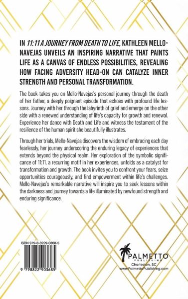Uncover Life's Profound Lessons through a Transformative Journey from Death to Life. Immerse yourself in the profound narrative of 11:11 A Journey from Death to Life, a testament to the resilience of the human spirit and the transformative power of adversity. Author Kathleen Mello-Navejas bravely shares her deeply personal journey, centered on the loss of her father, a pivotal experience that offers a trove of profound life lessons. As she guides you through her labyrinth of grief, you will witness firsthand her emergence on the other side - a testament to life's remarkable capacity for growth and renewal. Mello-Navejas intertwines her personal narrative with the symbolic significance of 11:11, a recurring motif that punctuates her life experiences, serving as a catalyst for transformation and growth. Her story is not only about loss and grief but also about embracing each day fearlessly, seizing opportunities with courage, and finding empowerment within life's challenges. Her intimate account will inspire you to confront your own fears, to see the opportunities that lie within your struggles, and to understand that within life's challenges lies the potential for empowerment and purpose. With her remarkable narrative, Mello-Navejas beckons you to venture into your shadows, seeking the lessons within your darkness, and journeying towards a life illuminated by newfound strength and enduring significance. Delving into themes of family, faith, and spirituality, 11:11 A Journey from Death to Life echoes with a resonance that goes beyond the personal, reaching out to all those who have grappled with loss and found strength in adversity. This narrative is an inspiring call to self-discovery, inviting you to confront and transcend your trials, turning adversity into a crucible for inner strength and transformation. Whether you're seeking solace, enlightenment, or simply an inspiring narrative, 11:11 A Journey from Death to Life offers a heartfelt journey of personal growth, resilience, and spiritual discovery.