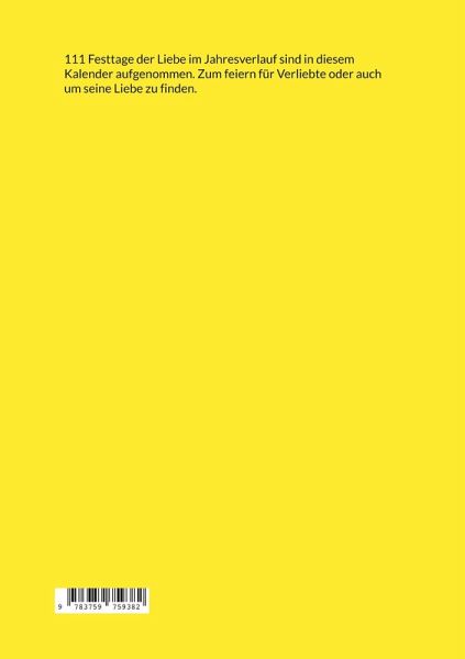 111 Festtage der Liebe im Jahresverlauf sind in dieser Sammlung aufgenommen. Zum feiern für Verliebte oder auch um seine Liebe zu finden.