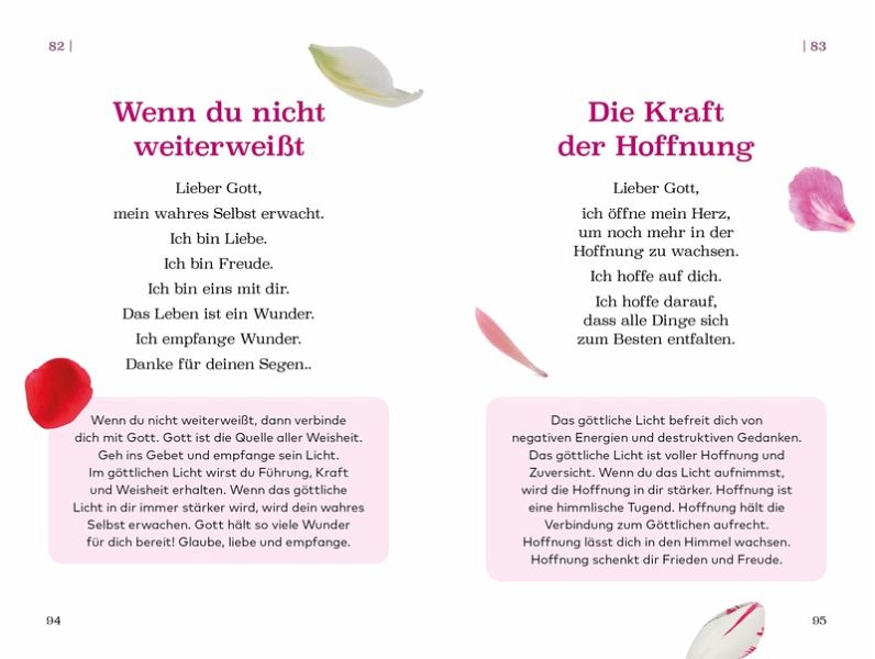 Jedes Gebet wird durch Worte zum Nachdenken ergänzt, die den Leser ermutigen, tiefer in die spirituelle Bedeutung des Gebets einzutauchen.