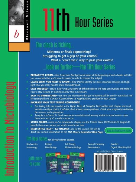 The 11th Hour Series of revision guides have been designed for quick reference. The organisation of these books will involve students actively in the learning process and reinforcement of concepts. At the end of each chapter there will be a test including multiple choice questions, true/false questions and short answer questions, every answer will involve an explanation. Each book will contain icons in the text indicating additional support on a dedicated web-page. Students having difficulties with their courses will find this an excellent way to raise their grades. * Clinical correlations or everyday applications include examples from the real world to help students understand key concepts more readily. * Dedicated web page, there 24 hours a day, will give extra help, tips, warnings of trouble spots, extra visuals and more. * A quick check on what background students will need to apply helps equip them to conquer a topic. * The most important information is highlighted and explained, showing the big picture and eliminating the guesswork. * After every topic and every chapter, lots of opportunity for drill is provided in every format, multiple choice, true/false, short answer, essay. * An easy trouble spot identifier demonstrates which areas need to be reinforced and where to find information on them. * Practice midterms and finals prep them for the real thing.