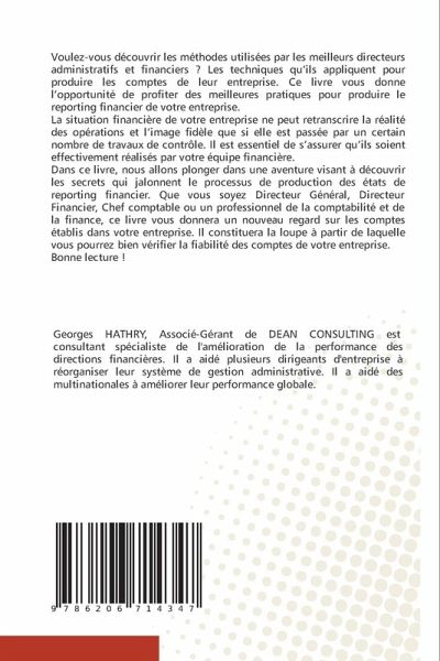 Voulez-vous découvrir les méthodes utilisées par les meilleurs directeurs administratifs et financiers ? Les techniques qu'ils appliquent pour produire les comptes de leur entreprise. Ce livre vous donne l'opportunité de profiter des meilleures pratiques pour produire le reporting financier de votre entreprise. La situation financière de votre entreprise ne peut retranscrire la réalité des opérations et l'image fidèle que si elle est passée par un certain nombre de travaux de contrôle. Il est essentiel de s'assurer qu'ils soient effectivement réalisés par votre équipe financière. Dans ce livre, nous allons plonger dans une aventure visant à découvrir les secrets qui jalonnent le processus de production des états de reporting financier. Que vous soyez Directeur Général, Directeur Financier, Chef comptable ou un professionnel de la comptabilité et de la finance, ce livre vous donnera un nouveau regard sur les comptes établis dans votre entreprise. Il constituera la loupe à partir de laquelle vous pourrez bien vérifier la fiabilité des comptes de votre entreprise.Bonne lecture !