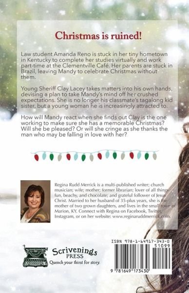 Law student Amanda Reno is stuck in her tiny hometown in Kentucky to complete her studies virtually and work part-time at the Clementville Café. Her parents are stuck in Brazil, leaving Mandy to celebrate Christmas without them. Young Sheriff Clay Lacey takes matters into his own hands, devising a plan to take Mandy's mind off her crushed expectations. She is no longer his classmate's tagalong kid sister, but a young woman he is increasingly attracted to. How will Mandy react when she finds out Clay is the one working to make sure she has a memorable Christmas? Will she be pleased? Or will she cringe as she thanks the man who may be falling in love with her?