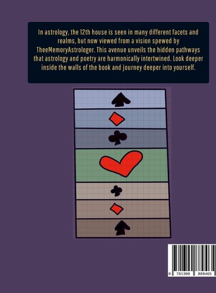 Take a deep dive into a novel notion-Astrology and Poetry mixed! Expression and education in a fresh format. Let TheeMemoryAstrologer guide you deep into the 12th house in astrology and lead you beyond the walls of the book as you explore themes such as imagination, solitude, overcoming obstacles, and finding inner-inspiration. Deep inside the 12th house in astrology are pathways yet to be uncovered. This book unlocks your imagination with words and illustrations that will challenge you to rethink and reimagine the endless possibilities that are buried deep within the 12th house in astrology, and even deeper within yourself.