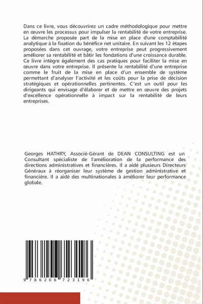 Dans ce livre, vous découvrirez un cadre méthodologique pour mettre en oeuvre les processus pour impulser la rentabilité de votre entreprise. La démarche proposée part de la mise en place d'une comptabilité analytique à la fixation du bénéfice net unitaire. En suivant les 12 étapes proposées dans cet ouvrage, votre entreprise peut progressivement améliorer sa rentabilité et bâtir les fondations d'une croissance durable. Ce livre intègre également des cas pratiques pour faciliter la mise en oeuvre dans votre entreprise. Il présente la rentabilité d'une entreprise comme le fruit de la mise en place d'un ensemble de système permettant d'analyser l'activité et les coûts pour la prise de décision stratégiques et opérationnelles pertinentes. C'est un outil pour les dirigeants qui envisage d'élaborer et de mettre en oeuvre des projets d'excellence opérationnelle à impact sur la rentabilité de leurs entreprises.
