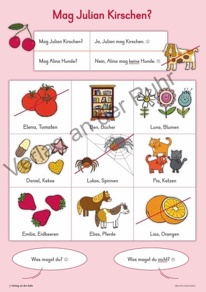 Organisationsmaterial für den DaZ-Unterricht an Grundschulen, Klasse 1, 2, 3, 4 +++ "Ich muss auf die Toilette!" Eigentlich ein einfacher Satz - es sei denn, man stammt aus Syrien, Serbien, Eritrea oder beispielsweise Afghanistan. Geringste Bedürfnisse können da schon mal große Sorgen bereiten. Damit sich Kinder aus diesen Ländern dennoch im Schulalltag zurechtfinden, ihre Bedürfnisse mitteilen können und vor allem schnell die deutsche Sprache lernen, veranschaulichen diese zwölf großen DaZ-Poster anhand von Bild-Wort-Zuordnungen die wichtigsten Vokabeln des deutschen Grundwortschatzes. Deutsch-Anfänger finden auf einen Blick wichtige Wörter und erste Sätze. Alle Nomen sind zudem mit Artikeln und der Mehrzahlform versehen. Einfache Frage-Antwort-Sätze ermöglichen zudem direktes Arbeiten am Poster und erweitern den Wortschatz spielerisch. Auf den 12 Postern zu den Themen "Mein Körper", "Gefühle", "Kleidung", "Farben", "Zahlen", "Essen und Trinken", "im Haus", "in der Stadt", "Monate und Jahreszeiten", "Wochentage und Tageszeiten", "in der Schultasche" und "Tiere" werden über 200 Begriffen bildlich dargestellt. So werden kleine Bedürfnisse nicht zu großen Problemen!