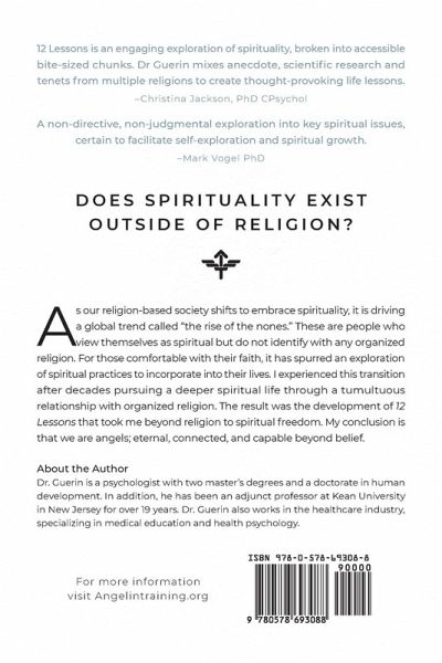 As our religion-based society shifts to embrace spirituality, it is driving a global trend called "the rise of the nones." These are people who view themselves as spiritual but do not identify with any organized religion. For those comfortable with their faith, it has spurred an exploration of spiritual practices to incorporate into their lives. I experienced this transition after decades pursuing a deeper spiritual life through a tumultuous relationship with organized religion. The result was the development of 12 Lessons that took me beyond religion to spiritual freedom. My conclusion is that we are angels; eternal, connected, and capable beyond belief.