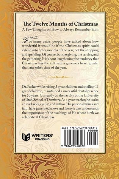 Book synopsis: For many years, people have talked about how wonderful it would be if the Christmas spirit could extend into other months of the year, not the shopping and spending. Of course, but the giving, the service, and the gathering. It is about lengthening the tendency that Christmas has the cultivate a generous heart greater than any other time of the year. Autobiography: Dr. Packer while raising 5 great children and spoiling 11 grandchildren, maintained a successful dental practice for 50 years. Currently on the faculty of the University of Utah School of Dentistry. As a great teacher, he is also an avid skier, cyclist, and author. His personal values and faith have generated a love and lifestyle that understands the importance of the teachings of He whose birth we celebrate at Christmas.