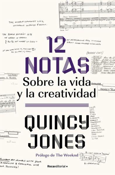 Quincy Jones, la leyenda viva más importante de la música popular que ha trascendido géneros y fronteras, nos presenta en este libro toda su brillante sabiduría para ser una persona creativa a cualquier edad. Quincy Jones ha cumplido 89 años, y sin embargo, sería el primero en decirte que está lejos de terminar su carrera. ¿Cómo puede seguir adelante a una edad en la que la mayoría de la gente estaría jubilada? ¿De dónde saca la inspiración aparentemente interminable que lo mantiene persiguiendo la creatividad a un nivel tan alto? 12 notas es una guía de autodesarrollo que nos confirma que la creatividad es una llamada que puede y debe ser respondida sin importar la edad que tengas. A partir de su propia vida y de la de sus muchos colaboradores creativos, pasados y presentes, los lectores aprenderán lecciones, tanto filosóficas, como todo de herramientas para transformar el dolor en poder, así como recordatorios prácticos, como el valor de establecer metas y articular intenciones a través de afirmaciones diarias. Quincy finalmente comparte su propio proceso con los lectores para que comprendan la importancia de dejar que la honestidad, el trabajo duro y las buenas relaciones, y no el ego, impulsen tu carrera. Esta maravillosa edición incluye un prólogo de The Weeknd. La crítica ha dicho: 'Un libro que narra, con su brillante sabiduría, cómo ser una persona creativa a cualquier edad.' Jazz Time Magazine 'Si necesitáis regalo para alguien que quiera dedicarse a la música o le guste muchísimo la música, este libro que acabo de leer, es oro.' Ángel Martín Gómez, guionista, actor y músico 'La leyenda viva de la música popular, productor y arreglista de muchos grandes, demuestra con esta guía que la creatividad carece de edad y de espacios. Y que el dolor se puede transformar en un arma de creación y de poder.' Rosa Ballarín, Expansión 'Un relato indispensable para una persona de cualquier edad que se sienta perdida o desee encontrar el equilibrio.' Mi Fuga 'Una obra muy reflexiva que me ha dado grandes consejos y lecciones de vida.' Letras difuminadas 'He descubierto esta maravilla. Muchas gracias Quincy Jones. Una lección de vida. Que el título no os asuste. No hace falta ser músico para disfrutarlo.' Eduard Iniesta, músico