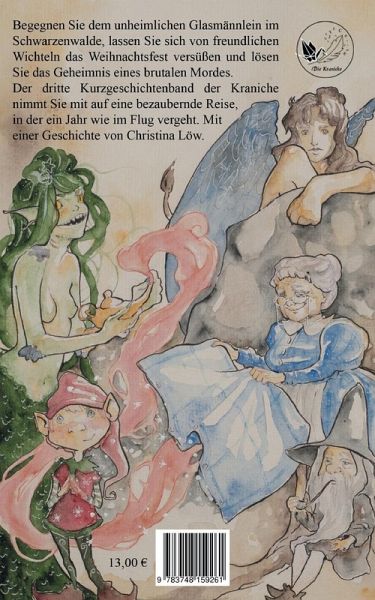 Begegnen Sie dem unheimlichen Glasmännlein im Schwarzenwalde, lassen sie sich von freundlichen Wichteln das Weihnachtsfest versüßen und lösen sie das Geheimnis eines brutalen Mordes.Der dritte Kurzgeschichtenband der Kraniche nimmt Sie mit auf eine bezaubernde Reise, in der ein Jahr wie im Flug vergeht.Mit einer Gastgeschichte von Christina Löw.