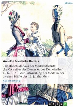 Fachbuch aus dem Jahr 2013 im Fachbereich Kunst - Kunstgeschichte, , Sprache: Deutsch, Abstract: Die im vorliegenden Band reproduzierten Modestiche sind in den Jahren zwischen 1867 und 1878 in dem französischen Modemagazin "Le Conseiller des Dames et des Demoiselles" erschienen. Die Mode machte in dieser Zeit eine außerordentliche Wandlung durch, auf die diese Arbeit im Detail eingeht.Annette F. Bolzius begeisterte sich schon als Kind für Musik und Sprachen. So folgten nach dem Abitur ein Musikstudium und Übersetzer-Sprachstudium (Französisch, Englisch). Nach langjährigen Tätigkeiten als Übersetzerin und Jugendmusikschullehrerin arbeitet sie bereits seit vielen Jahren als Sprachdozentin. Dabei ist es ihr besonders wichtig, die Freude an Sprachen mit einem spielerischen und muttersprachlichem Ansatz zu fördern und zu vermitteln. Bei GRIN ist bislang ein weiteres Buch von ihr erschienen: "Chante avec moi" (https://www.grin.com/document/985633; ISBN: 978-3-34633-883-9)