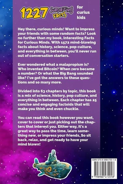 Did you know that the world's largest snowflake on record measured 15 inches wide and 8 inches thick? Are you curious about our world's inexplicable mysteries, fascinating history, and captivating facts? . Grab this opportunity to nurture your curiosity and entertain with amazing an unbelievable but true facts! . Dive into Interesting Facts For Curious Minds: 1227 Random But Mind Blowing Facts About History, Science, Pop Culture and Everything in Between, to unveil: . This fascinating book will unlock a curious mind with things you never could have imagined, in a kid-friendly way. Unlock the doors to endless knowledge and be captivated by fascinating facts! Click on the link at the top of this page to access Interesting Facts For Curious Minds! Knowledge is a treasure trove, waiting to be discovered. It's your turn to embark on the exploration!