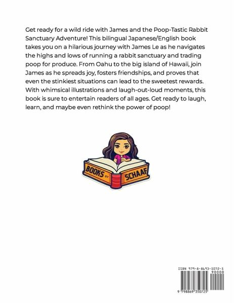 Get ready for a wild ride with James and the Poop-Tastic Rabbit Sanctuary Adventure! This bilingual Japanese/English book takes you on a hilarious journey with James Le as he navigates the highs and lows of running a rabbit sanctuary and trading poop for produce. From Oahu to the big island of Hawaii, join James as he spreads joy, fosters friendships, and proves that even the stinkiest situations can lead to the sweetest rewards. With whimsical illustrations and laugh-out-loud moments, this book is sure to entertain readers of all ages. Get ready to laugh, learn, and maybe even rethink the power of poop!