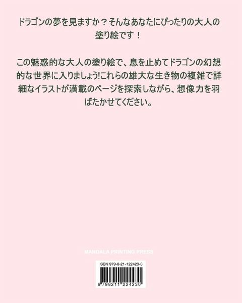 ドラゴンの夢を見ますか?そんなあなたにぴったりの大人の塗り絵です! この魅惑的な大人の塗り絵で、息を止めてドラゴンの幻想的な世界に入りましょう!これらの雄大な生き物の複雑で詳細なイラストが満載のページを探索しながら、想像力を羽ばたかせてください。