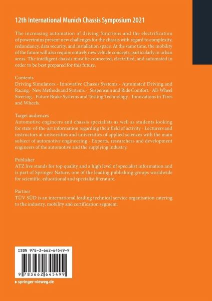 Driving Simulators.- Innovative Chassis Systems.- Automated Driving and Racing.- New Methods and Systems.- Suspension and Ride Comfort.- All-Wheel Steering.- Future Brake Systems and Testing Technology.- Innovations in Tires and Wheels.