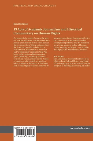 Constituted of a range of essays, the present volume addresses a variety of contemporary and historical events from human rights perspectives. Taking on issues from the American presidential election to North Korean missile tests to terrorism and «civilizational» conflict to Cold War history, the current collection seeks to speak plainly by combining academic convention with a «feuilleton» style. Aimed at students and the public as much as other academics, the essays in this book seek to make rights concepts concrete by speaking to the issues through which they become salient: international conflict, social justice problems and the historical scenes that ask us to realize all human beings' equality and dignity - an equality and dignity this book seeks to promote.