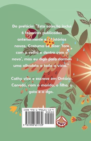 Entra numa coleção da autora canadiana Cathy McGough, onde cada conto te leva ao mundo de novas personagens e géneros: 1. * O primeiro conto, "Dandelion Wine", foi finalista do Favorito dos Leitores de 2019 no género Conto/Novela e recebeu CINCO ESTRELAS do Favorito dos Leitores. É um flashback a 1967, sobre uma menina "com um objetivo" que vive numa pequena cidade canadiana. * A segunda história, "The Brightest Star ", é uma história de amor romântico com uma diferença. * A terceira, "Margaret's Revelation" ( A Revelação de Margaret), é sobre uma mulher que se sente desvalorizada e decide fazer algo a respeito. * A quarta, "The Umbrella and the Wind " ( O guarda-chuva e o vento ), é uma história de ficção científica publicada originalmente numa antologia. É sobre um professor, um guarda-chuva, garrafas voadoras, um objeto verde gigante, guarda-chuvas e armas. * A quinta, "Darryl and Me ", é a história trágica de uma mulher e da perda. * O sexto, "Death Wish ", em que o protagonista, aborrecido com a sua vida de tambor, sai de si próprio. * Nas SETE NOVAS HISTÓRIAS incluídas, vais conhecer um super-herói da pandemia, ouvir uma mãe contar à filha como conheceu o marido, fazer parte do pesadelo de um caçador de casas, ouvir todo o drama de uma família a planear um funeral durante a covid e, finalmente, um conto de ficção científica sobre algo como uma covid no futuro. Comovente, divertida, agridoce, instigante, esta coleção convida-te a mergulhar nela e a descobrir qual a história que fica contigo mais tempo. Para leitores que gostam de uma grande variedade de temas, personagens e géneros com impacto duradouro.