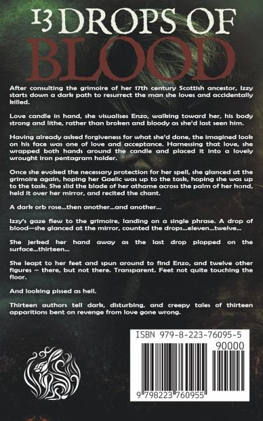 After consulting the grimoire of her 17th century Scottish ancestor, Izzy starts down a dark path to resurrect the man she loves and accidentally killed. Love candle in hand, she visualises Enzo, walking toward her, his body strong and lithe, rather than broken and bloody as she'd last seen him. Having already asked forgiveness for what she'd done, the imagined look on his face was one of love and acceptance. Harnessing that love, she wrapped both hands around the candle and placed it into a lovely wrought iron pentagram holder. Once she evoked the necessary protection for her spell, she glanced at the grimoire again, hoping her Gaelic was up to the task, hoping she was up to the task. She slid the blade of her athame across the palm of her hand, held it over her mirror, and recited the chant. A dark orb rose...then another...and another... Izzy's gaze flew to the grimoire, landing on a single phrase. A drop of blood-she glanced at the mirror, counted the drops...eleven...twelve... She jerked her hand away as the last drop plopped on the surface...thirteen... She leapt to her feet and spun around to find Enzo, and twelve other figures - there, but not there. Transparent. Feet not quite touching the floor. And looking pissed as hell. Thirteen authors tell dark, disturbing, and creepy tales of thirteen apparitions bent on revenge from love gone wrong.