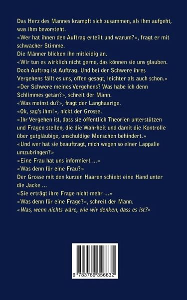 13 zum Teil skurrile Kurzgeschichten, die die Realität auf den Kopf stellen. Unter anderem unterhält sich der Autor auf seinem Balkon mit Zeitreisenden. Die Form der Erde wird in Frage gestellt. James Bond greift in einer Bar zur Waffe. Gott beschliesst, eine zweite Erde zu erschaffen, parallel zur ersten. Ein Mann hat bei einem Autounfall eine Grenzerfahrung. Eine Frau und ein Mann verbringen wegen Dauerregen auf einer Alp eine Nacht miteinander.