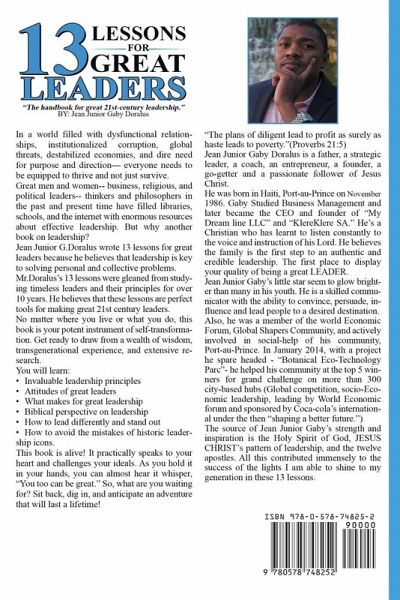 In a world filled with dysfunctional relationships, institutionalized corruption, global threats, destabilized economies, and dire need for purpose and direction, everyone needs to be equipped to thrive and not just survive. The author shares 13 lessons for great leaders because he believes that leadership is key to solving personal and collective problems.