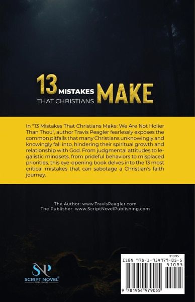 Are you tired of feeling pressured to be a perfect Christian? Are you tired of the judgment and hypocrisy you see among fellow believers? "13 Mistakes that Christians Make: You Are Not Holier Than Thou" is the book you need to read. In "13 Mistakes That Christians Make: We Are Not Holier Than Thou", author Travis Peagler fearlessly exposes the common pitfalls that many Christians unknowingly and knowingly fall into, hindering their spiritual growth and relationship with God. With a fresh perspective and insightful wisdom, this book shines a light on the flawed thinking and behaviors that often plague believers, ultimately leading them astray from their true purpose and calling. From judgmental attitudes to legalistic mindsets, from prideful behaviors to misplaced priorities, this eye-opening guide delves into the 13 most critical mistakes that can sabotage a Christian's faith journey. Through real-life stories, practical advice, and scriptural truths, readers are encouraged to reflect, repent, and refocus on the grace and love of God. Whether you're a seasoned believer or a newcomer to the faith, "13 Mistakes That Christians Make" is a wake-up call. The alarm is ringing for those seeking to deepen their faith. It invites them to shed the facade of holier-than-thou attitudes and instead embrace humility, authenticity, and a genuine pursuit of God's heart. This book is a must-read for anyone striving to overcome the barriers that separate them from experiencing the fullness of God's blessings and presence in their lives.