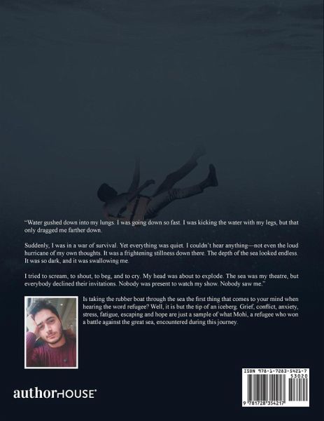 "Water gushed down into my lungs. I was going down so fast. I was kicking the water with my legs, but that only dragged me farther down. Suddenly, I was in a war of survival. Yet everything was quiet. I couldn't hear anything-not even the loud hurricane of my own thoughts. It was a frightening stillness down there. The depth of the sea looked endless. It was so dark, and it was swallowing me. I tried to scream, to shout, to beg, and to cry. My head was about to explode. The sea was my theatre, but everybody declined their invitations. Nobody was present to watch my show. Nobody saw me." Is taking the rubber boat through the sea the first thing that comes to your mind when hearing the word "refugee"? Well, it is but the tip of an iceberg. Grief, conflict, anxiety, stress, fatigue, escaping and hope are just a sample of what Mohi, a refugee who won a battle against the great sea, encounters during this journey.