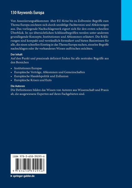 Von Assoziierungsabkommen über EU-Krise bis zu Zollverein: Begriffe zum Thema Europa zeichnen sich durch unzählige Fachtermini und Abkürzungen aus. Das vorliegende Nachschlagewerk eignet sich für den ersten schnellen Überblick. In 130 übersichtlichen Schlüsselbegriffen werden unter anderem grundlegende Konzepte, Institutionen und Abkommen erläutert. Die Erklärungen sind kompakt und verständlich formuliert und bieten Basiswissen für alle, die einen schnellen Einstieg in das Thema Europa suchen, einzelne Begriffe nachschlagen oder ihr vorhandenes Wissen auffrischen möchten.