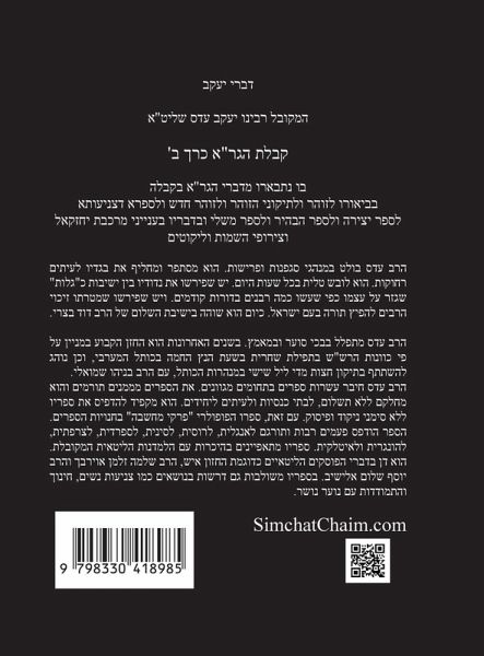 דברי יעקבקבלת הגר"א כרך בהמקובל רבינו יעקב עדס שליט"א