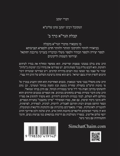 דברי יעקבקבלת הגר"א כרך בהמקובל רבינו יעקב עדס שליט"א
