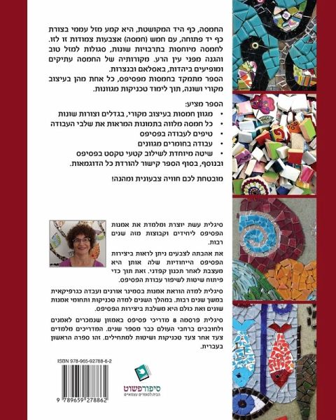 החמסה, כף היד המקושטת, היא קמע מזל עממי בצורת כף יד פתוחה, עם חמש (חמסה) אצבעות צמודות זו לזו. לחמסה מיוחסות בתרבויות שונות, סגולות למזל טוב והגנה מפני עין הרע. מקורותיה של החמסה עתיקים ומופיעים ביהדות, באסלאם ובנצרות.הספר מתמקד בחמסות מפסיפס, כל אחת מהן בעיצוב מקורי ושונה, תוך לימוד טכניקות מגוונות.הספר מציע מגוון חמסות בעיצוב מקורי, בגדלים וצורות שונותכל חמסה מלווה בתמונות המראות את שלבי העבודהטיפים לעבודה בפסיפסעבודה בחומרים מגווניםשיטה מיוחדת לשילוב קטעי טקסט בפסיפסובנוסף, בסוף הספר קישור להורדת כל הדוגמאות.מובטחת לכם חוויה צבעונית ומהנה!