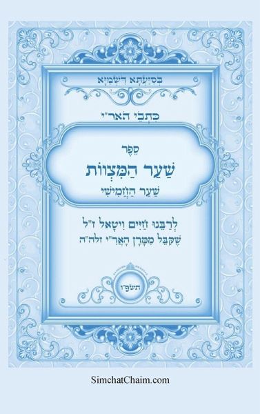 כתבי האר"י - שער המצוות לרבי חיים ויטאלSha'ar HaMitzvotהספר מבאר חלק ממצוות התורה על פי הקבלה ופנימיות התורה, בכללות ספר זה קל להבנהרבי יצחק לוריא אשכנזי [מכונה - האר"י הקדוש, רבינו האר"י, האר"י ז"ל, האר"י החי]. נולד בשנת ה'רצ"ד - והסתלק ה' במנחם אב ה'של"ב, היה ממקובלי צפת ומחשובי המקובלים שבכל הדורות. שיטתו - קבלת האר"י - הייתה לשיטה המרכזית בלימוד הקבלה, ועליה מבוססים גם חלקים נרחבים בתורת החסידותתלמידו המובהק רבי חיים ויטאל ז"ל היה ממשיך דרכו ומפיץ תורתו של הארי הקדוש, ורק בגללו ירדה נשמת האר"י לעולם ללמדו תורהבאותה תקופה למד רבי חיים ויטאל בשקידה על תלמודו בעודו שומר על מקומו בשני בתי המדרש, אצל האלשיך הקדוש שלמדו תורה ואצל הרמ"ק שלמדו קבלה, מאחר והיה עליו להספיק את כל הלימודים הללו הוצרך רבנו לשקוד ולהתמיד על לימודיו וכמעט שלא ישןלאחר מספר שנים קיבל רבי חיים ויטאל את האר"י לרבו המובהק, עזב את עסקי המסחר בהם עסק ופינה את כל יומו ללימוד הקבלהכיוון שהאר"י הקדוש לא היה כותב את חידושיו, אלא לימד ונתן שיעורים על פה, היה זה רבי חיים ויטאל, שערך את כל חידושי רבו והעלה אותם על הכתבעשרים חודש למד רבנו את תורת הנסתר מפי האריז"ל, במשך כל הזמן הזה גילה האר"י לרבי חיים ויטאל סודות נפלאים שלא שמעתם אוזן. באחת הפעמים נגש רבי חיים ויטאל לרבו האר"י ובקשו כי יגלה לו איזה דבר מסוים, אמר לו האר"י שאינו יכול כי דבר זה יגרום לפטירתו, אך לאחר מחשבה שניה אמר לו כי כל סיבת הימצאו בעולם זה להעביר לו גילויים אלו בתורת הנסתר ולכן מסר האר"י את נפשו וגילה לרבי חיים ויטאל את אותו הסוד, זמן קצר לאחר מכן, נפטר האריז"ל ונשמתו עלתה בסערה השמיימה. האר"י העיד על רבי חיים ויטאל כי הוא היחיד שמבין את דבריו לעומק ועומד על דעתו. ל' ניסן בשנת ה'ש"פ עלתה נשמתו בסערה השמיימה, ומנוחתו כבוד בעיר דמשק שבסוריה