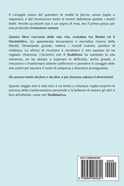 "La mia rivoluzione umana: il coraggio di cambiare" Il coraggio nasce dal guardare la realtà in faccia, senza fughe o negazioni, e dal riconoscere tanto le nostre debolezze quanto i nostri limiti. Perché accettarli non è un segno di resa, ma il primo passo per una profonda rivoluzione interiore. Questo libro racconta della mia vita, srotolata tra Rimini ed il Montefeltro, tra spensierata incoscienza e nevrotica ricerca della felicità. Diventando grande, vedevo i ricordi della mia vita svanire, perdere di nitidezza. Lo sforzo di ricordare e riordinare il mio passato mi ha regalato chiarezza. L'incontro con il Buddismo ha cambiato la mia esistenza, mi ha aiutato a superare le difficoltà, anche grandi, a rimuovere e trasformare antiche sofferenze e prendere il coraggio delle mie azioni per lasciare il ruolo di comparsa e diventare protagonista. Ho ancora tanto da fare e da dire, e per fortuna adesso è divertente. Questo viaggio non è solo mio: è un invito a chiunque voglia scoprire la potenza della trasformazione personale e il valore di aiutare gli altri a fare lo stesso, come veri Bodhisattva. Se anche tu senti che è arrivato il momento di innamorarti di te stesso, di affrontare la vita con lucidità e di rendere ogni giorno un inno alla vita, questa testimonianza, scritta con sincerità, gratitudine e un pizzico di ironia, può accompagnarti verso il primo passo.