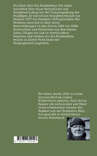 Ein Buch über die Bundeswehr. Der Autor berichtet über seine Wehrpflicht und Grundausbildung bei der Truppengattung der Feldjäger. Er hat seinen Grundwehrdienst von Oktober 1977 bis Dezember 1978 geleistet. Des Weiteren schreibt er über seine Reserveübungen in den Jahren 1982 bis 1989. Geschichten und Erlebnisse aus dem wahren Leben. Folgen sie ihm in verschiedene Kasernen und erleben sie die Bundeswehr, welche in dieser Form heute der Vergangenheit angehört.