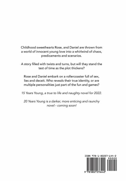 Childhood sweethearts Rose, and Daniel are thrown from a world of innocent young love into a whirlwind of chaos, predicaments and scenarios. A story filled with twists and turns, but will they stand the test of time as the plot thickens? Rose and Daniel embark on a rollercoaster full of sex, lies and deceit. Who reveals their true identity, or are multiple personalities just part of the fun and games? 15 Years Young, a true to life and naughty novel for 2022. 20 Years Young is a darker, more enticing and raunchy novel - coming soon!