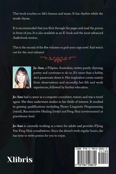 This book touches on life's lessons and issues. It has rhythm while the words rhyme. It is recommended that you flick through the pages and read the poems in front of you. It is also available as an E-book and the most advanced Audiobook version. This is the second of the five volumes so grab your copy now! And watch out for the next releases!