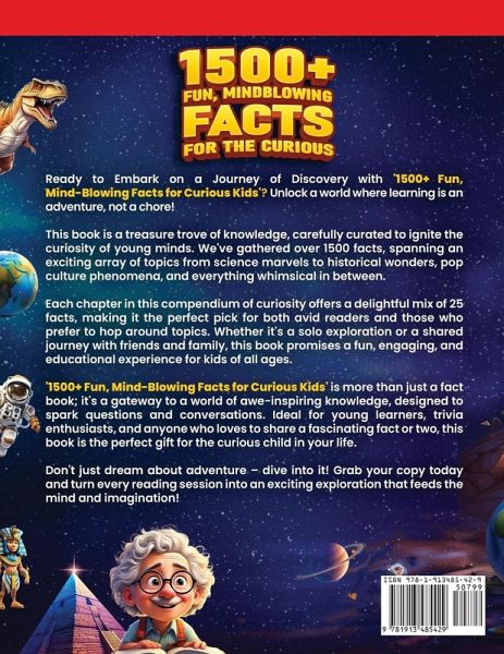 Ready to astonish friends, family, and yourself with the world's most incredible facts? "1500+ Fun, Mindblowing Facts For The Curious" is the ultimate, family-friendly compendium that transcends age barriers. Captivating for curious minds from 8 to 80, this book is packed with fascinating facts for everyone. Spanning 65 chapters of fascinating facts, embark on a journey through knowledge that's both enlightening and entertaining. Whether you flip to a random page or read cover to cover, each fact, delivered in a friendly tone, makes learning complex ideas enjoyable and easy. Satisfy your thirst for knowledge with answers to captivating questions such as: ¿ How do jellyfish survive without a brain? ¿ What's the story behind the world's first computer? ¿ Can a plant really eat insects? ¿ Why is the sky blue during the day and black at night? ¿ What makes the Leaning Tower of Pisa lean? Engage with intriguing topics that span across: ¿ The Mysteries of Nature: Uncover the secrets behind the animal kingdom's most peculiar behaviors and survival strategies. ¿ Innovations and Inventions: Journey through human ingenuity from the earliest tools to the frontier of modern technology. ¿ Wonders of the Cosmos: Explore the vastness of space and the phenomenal events that light up our universe. Quirks of Human Culture: Delve into the fascinating traditions, inventions, and practices that define societies around the globe. Dive into pages that offer shared discoveries, solo exploration, or a peaceful break from screens. This compilation sparks conversations, feeds curiosity, and brings moments of awe and relaxation. Begin your journey to enlightenment and entertainment today.