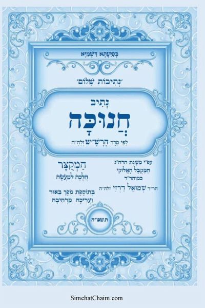 נתיבות שלום סידור מקוצר לרש"ש נתיב חנוכה