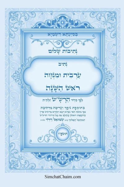 נְתִיבוֹת שָׁלוֹםנְתִיב - עַרְבִית וּמִנְחָה - רֹאשׁ הַשָּׁנָהעִם סֵדֶר הַסְּעוּדָה וְהַתַּשְׁלִיךְ ועודלְפִי סֵדֶר הַרָשָׁ"ש זַלְהַ"העַל פִּי מִשְׁנַת הרה"ג הַמְּקֻבָּל הָאֱלוֹקִיכמוהר"ר שְׁמוּאֵל דַרְזִי זלה"ההרב המקובל שלום מזרחי שרעבי [מכונה גם הרש"ש הקדוש] הסתלק י' בשבט ה'תקל"ז. היה מקובל בולט שעלה לארץ ישראל מתימן, ושימש ראש ישיבת המקובלים בית אל. מחבר - פירוש השמ"ש על כתבי האר"י וסידור הרש"ש עם כוונות התפילה.הרש"ש עמד בראש חברת רבנים מפורסמים שנקראה "חברת אהבת שלום" בדורינו ב.ה אנו זכינו שעשרות ישיבות ובתי כנסת לומדים ומתפללים על פי דברי וסידור הרש"שהרב המקובל רבי שמואל דרזי זלה"ה, נולד בבגדד שבעיראק מגיל צעיר עסק בתורת הנגלה והנסתר וללמד מפי גדולי חכמי עיראק ביניהם חכם יהודה פתיה. במשך שנים למד את תורת הנגלה והנסתר העמיד תלמידים הרבה [ביניהם הרב המקובל רבי איל תורג'מן], חיבר ספרים בעיקר בקבלה, וסידור הרש"ש, ונמנה בין חכמי ירושלים הספרדים, מקובל בולט ומכוין בתפילה בשער הכוונות למהרח"ו וכן בסידור הרש"ש. עמיתו בתורה של זקן המקובלים הרב יצחק כדורי, זכה ונפטר בעיצומו של יום השבת קודשסידור זה הוא על ערבית ומנחה לראש השנה עם סדר הסעודה לליל ראש השנה, תשליך, סדר בקשות מהרי"ח הטוב ועוד, מואר בצבעים, מוגה בדקדוק רב משער הכוונות, נהר שלום, פרי עץ חיים ומשנת הרב שמואל דרזי ועודמסודר מהרב המקובל רבי אייל תורג'מן שליט"א תלמידו נאמן ביתו של הרב המקובל רבי שמואל דרזי זלה"ה