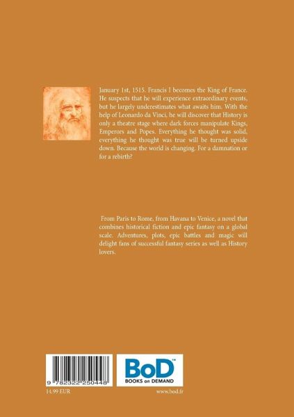 January 1st, 1515. Francis I becomes the King of France. He suspects that he will experience extraordinary events, but he largely underestimates what awaits him. With the help of Leonardo da Vinci, he will discover that History is only a theatre stage where dark forces manipulate Kings, Emperors and Popes. Everything he thought was solid, everything he thought was true will be turned upside down. Because the world is changing. For a damnation or for a rebirth?From Paris to Rome, from Havana to Venice, a novel that combines historical fiction and epic fantasy on a global scale. Adventures, plots, epic battles and magic will delight fans of successful fantasy series as well as History lovers.