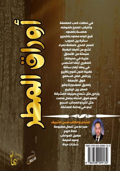 أوراق المطر رسائل حبّ صوفيّة، تأملاتٌ فلسفيةٌ، ومشاعرٌ جياشةٌ تُعبّر عن رحلةٍ داخليةٍ عميقة. كتابٌ سيُلهمُكم