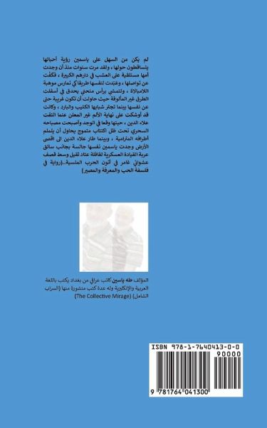 لم يكن من السهل على ياسمين رؤية احبائها يتساقطون حولها ، ولقد مرت سنوات منذ أن وجدت امها مستلقية على العشب في دارهم الكبيرة ، فكَفّت عن تواصلها ، وعَبّدت لنفسها طريقا كي تمارس موهبة اللامبالاة ، ولتمشي برأس منحني يحدق في اسفلت الطرق غير المألوفة حيث حاولت أن تكون غريبة حتى عن نفسها بينما تجتر شبابها الكئيب والبارد ، وكانت قد اوشكت على نهاية الالم غير المعلن عنما التقت علاء الدين ، حينها وقعا في الوجد واصبحت مصباحه السحري تحت ظل اكتئاب متموج يحاول ان يلملم اطرافه المترامية ، وبينما طار علاء الدين الى اقصى الارض وجدت ياسمين نفسها جالسة بجانب سائق عربة القيادة العسكرية لقافلة عتاد ثقيل ، وسط قصف عشوائي غامر في اتون الحرب المنسية..(رواية في فلسفة الحب والمعرفة والمصير)