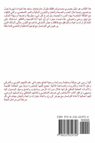 هذا الكتاب هو دليل حصري مصمم لمرافقتك طوال عام 2026. ستجد هنا تنبؤات شهرية حول مواضيع رئيسية مثل الحب والصحة والعمل والشؤون المالية والنمو الشخصي، والتي تتكيف مع الطاقة الخاصة بهذه الدورة الجديدة. يتم شرح كل شيء بطريقة واضحة وسهلة المنال، مع نهج روحي وتحويلي. هذه ليست مجرد أبراج إنها أداة للتوجيه والتفكير تساعدك على اتخاذ قرارات واعية، والتوافق مع طاقتك وعيش العام في تناغم مع الكون. مثالي لأولئك الذين يرغبون في التواصل مع قوتهم الداخلية والمضي قدمًا بثقة.