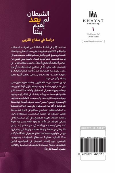 الشيطان لم يعد يقيم بيننا!دراسة في سفاح القربىملحق ثالوث الشبهات غرفة النوم، المطبخ، والحمَّاميستكشف هذا الكتاب قضايا المحرَّمات الجنسية، وخاصة سفاح القربى، من منظور اجتماعي وثقافي دون إلقاء اللوم على "الشيطان"، بل باعتبارها انعكاساً لمجتمعنا وقيمه المتغيرة. في زمن تنتشر فيه أخبار الجرائم الأخلاقية رغم محاولات التكتم، يصبح التجاهل ضرباً من العبث. يناقش الكتاب التحولات في مفهوم الجنس، سلطته الرمزية، وموقع العائلة والمجتمع، متسائلاً عن العوامل التي تساهم في اختراق المحظورات. بأسلوب تحليلي جريء، يسعى إلى كشف أبعاد هذه القضايا دون مواربة، محاولاً استنطاق المسكوت عنه، ليمنح القارئ فرصة لفهم أعمق لذاته ولمجتمعه في ضوء هذه التحولات العميقة.