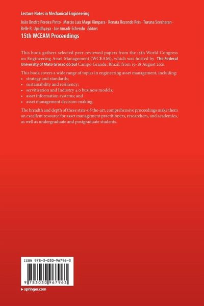 This book gathers selected peer-reviewed papers from the 15th World Congress on Engineering Asset Management (WCEAM), which was hosted by The Federal University of Mato Grosso do Sul Campo Grande, Brazil, from 15--18 August 2021