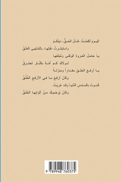 يسّاءلونَ - اندهاشاً فيكَ - هل عَرَجَا؟!راودتُ بالحبِّ سقفَ الشعر فانفرَجالم أصعدِ الغيمَ باسمِ الماءِ قافيةًحتى اتخذتُ نقائي صوبهُ دَرَجَاوجرّتي لغة القرآن مترعـــةهدي القلوب (ولم يجعل له عوجا)لم أقبسِ النارَ في طورِ الرُّؤى وَلهاًحتى رعيتُ قطيعَ المشتهى حججاألقيتُ في لُجّة المرآة طعمَ فمي